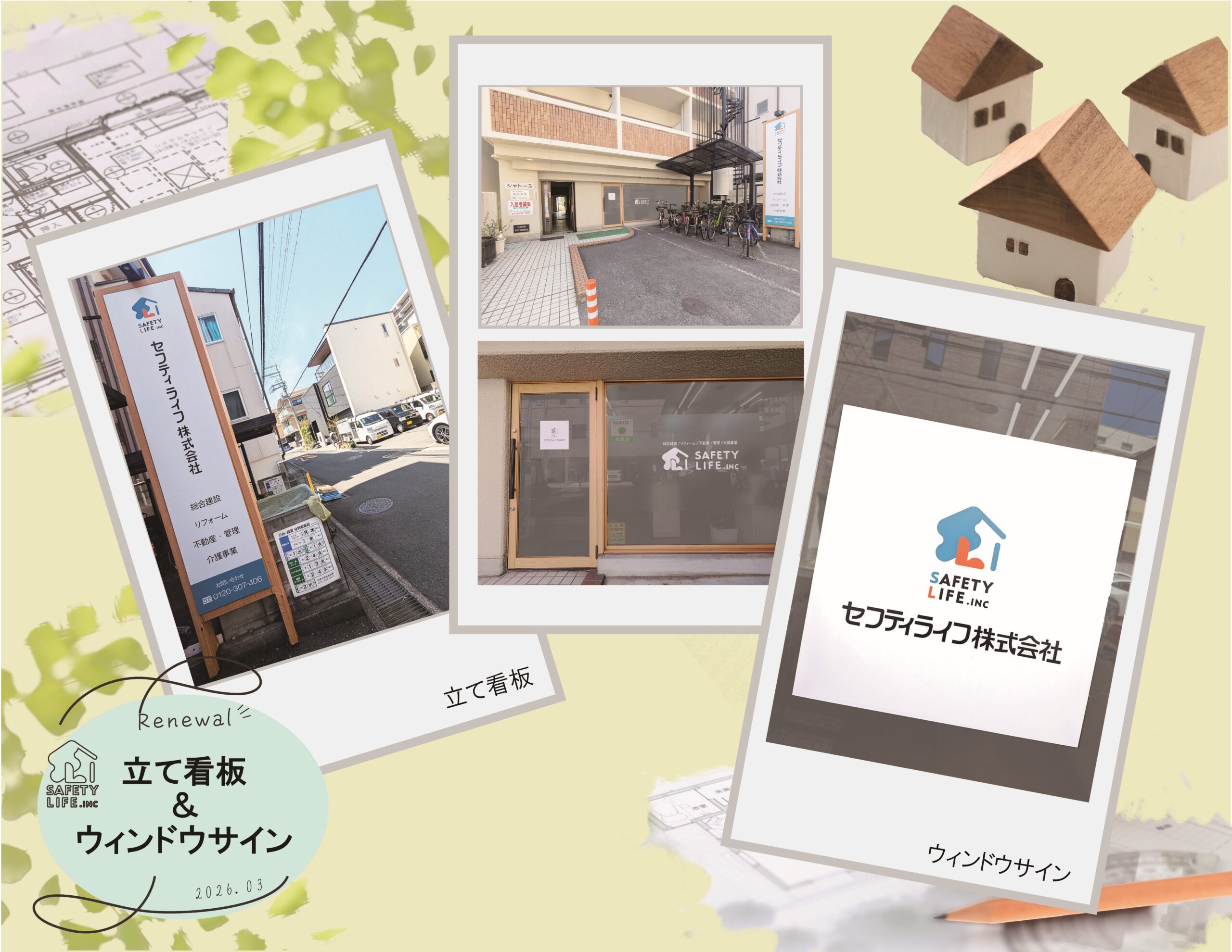 ”事務所の「立て看板」と「ウィンドウサイン」をリニューアルしました!!