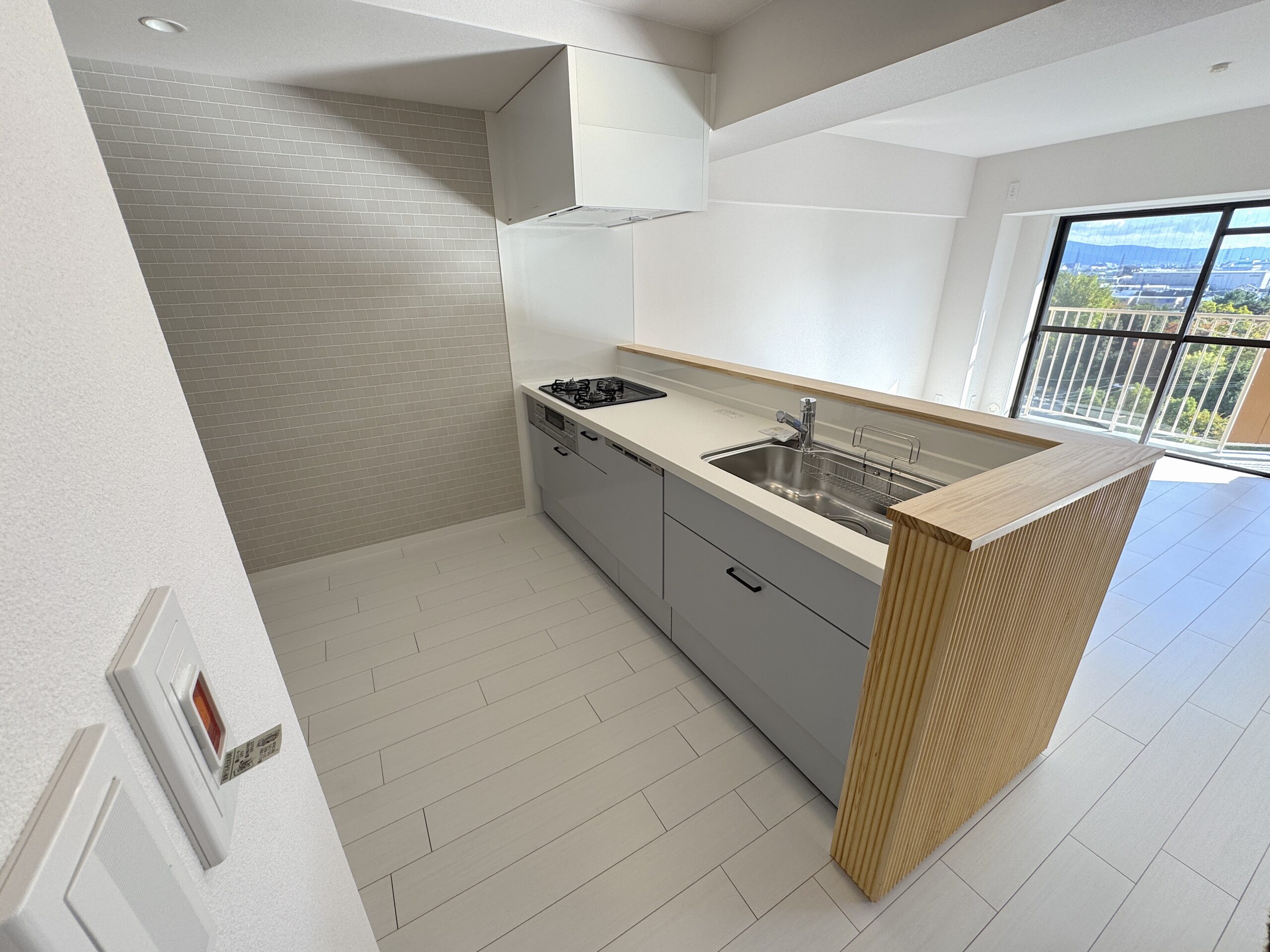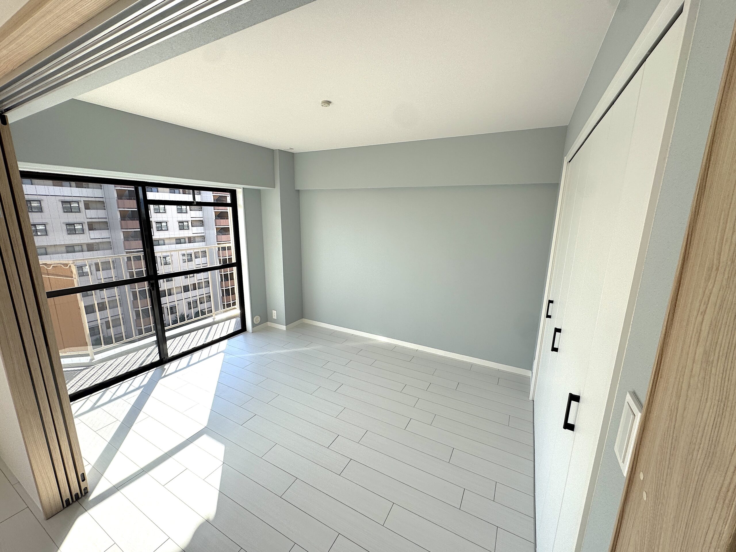 寒色系の北欧カラーを基調とし、寝室にはグリーン、洋室にはグレーのアクセントクロスを採用。お部屋全体を心地よい北欧テイストで統一しています。